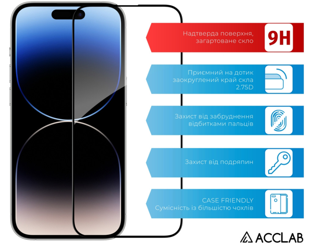 Скло захисне ACCLAB Full Glue ESD Apple iPhone 14 Pro Black (1283126542046)