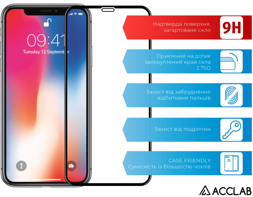 Скло захисне ACCLAB Full Glue ESD Apple Iphone XR/11 Black (1283126532146)
