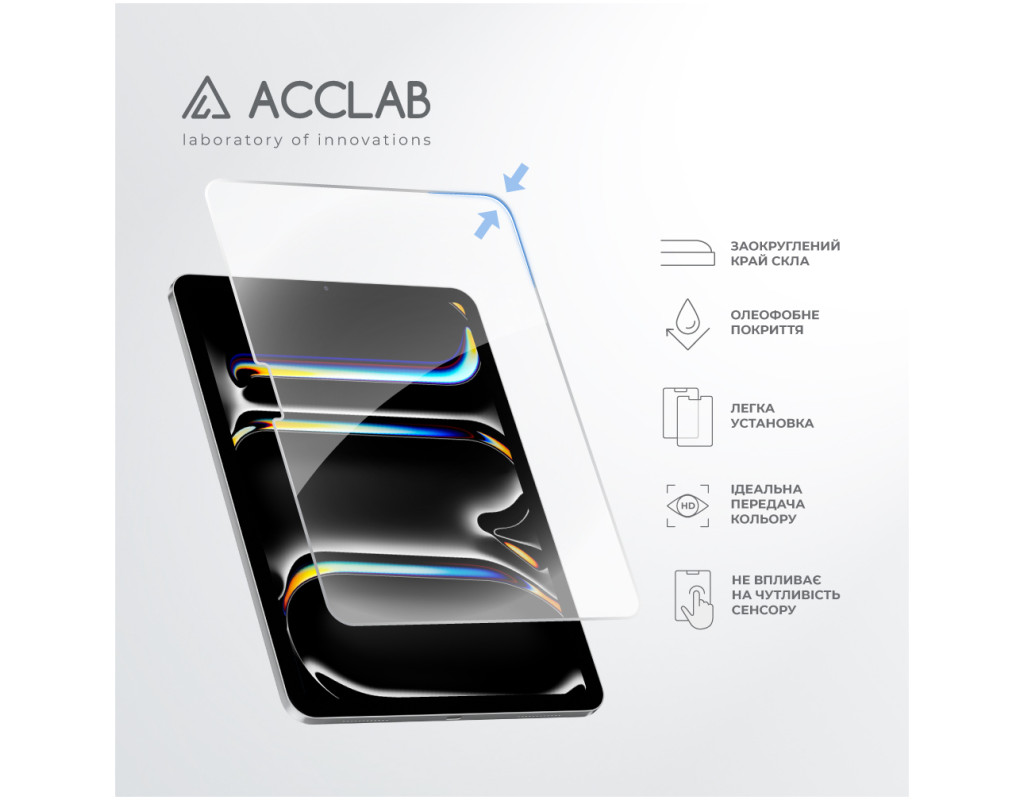 Скло захисне ACCLAB Full Glue Apple iPad Pro 11 (2024) (1283126593697)