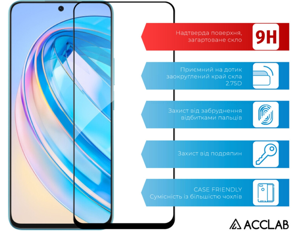 Скло захисне ACCLAB Full Glue Honor X8A Black (1283126591204)