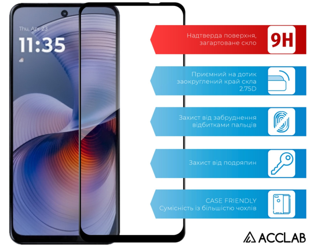 Скло захисне ACCLAB Full Glue Motorola G55 Black (1283126613210)