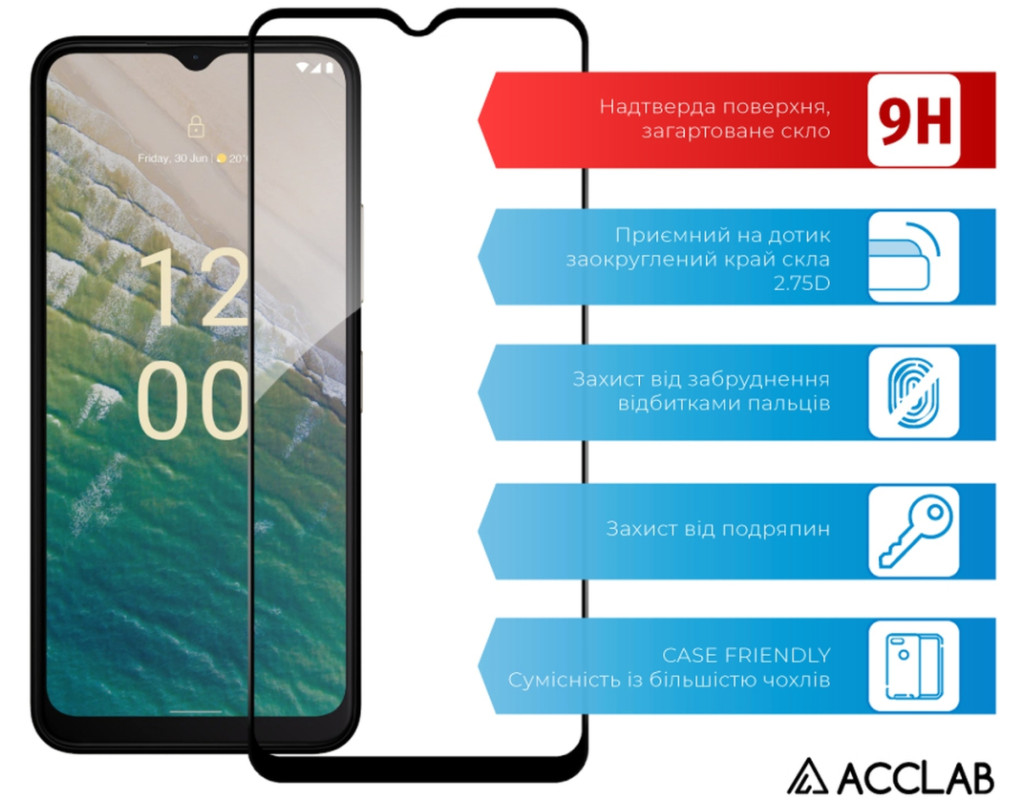 Скло захисне ACCLAB Full Glue Nokia C32 Black (1283126582219)