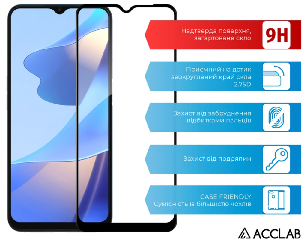 Скло захисне ACCLAB Full Glue Oppo A16 Black (1283126522024)