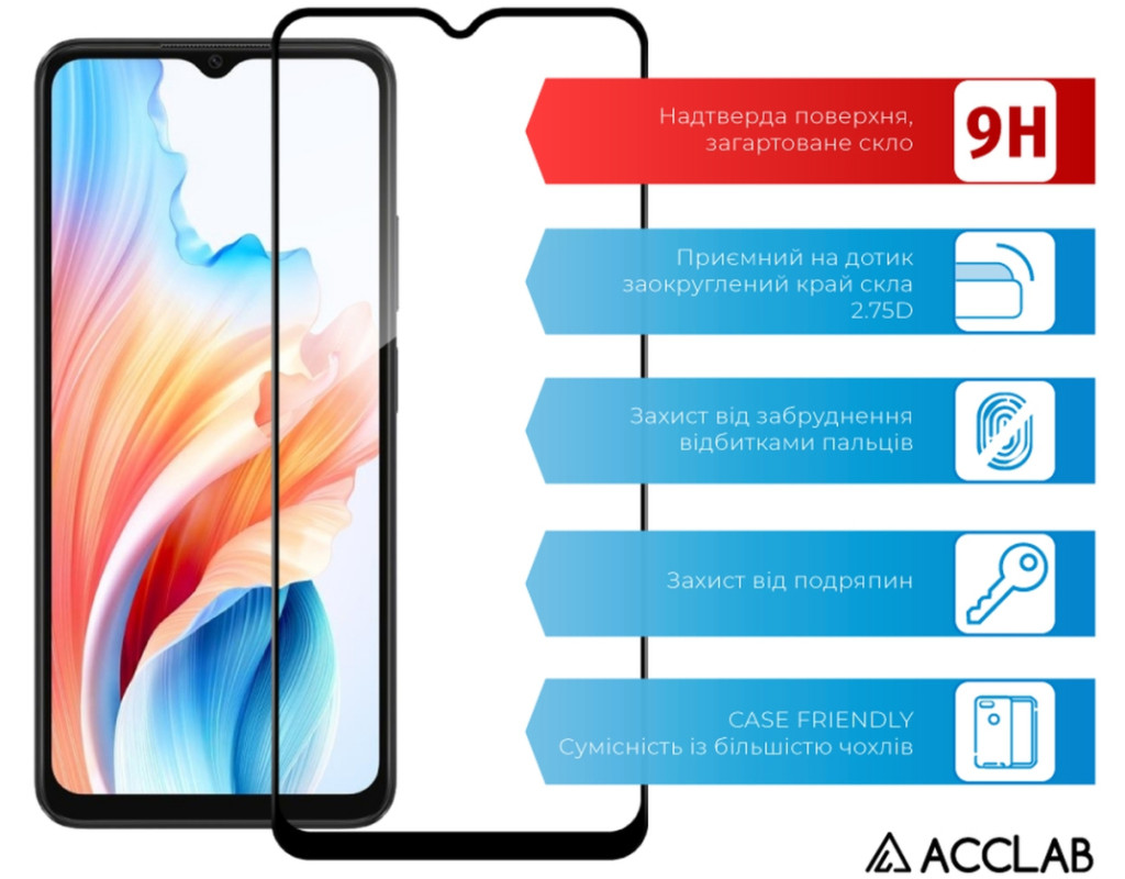 Скло захисне ACCLAB Full Glue Oppo A38 5G Black (1283126582462)