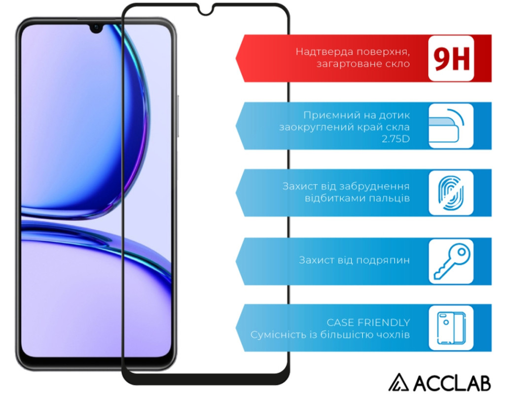 Скло захисне ACCLAB Full Glue Realme C53 Black (1283126577802)