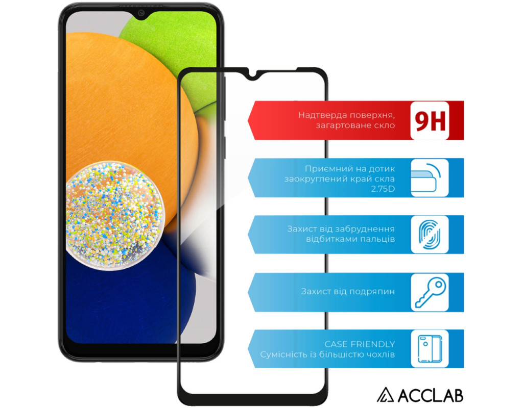 Скло захисне ACCLAB Full Glue Samsung A03 Black (1283126521621)