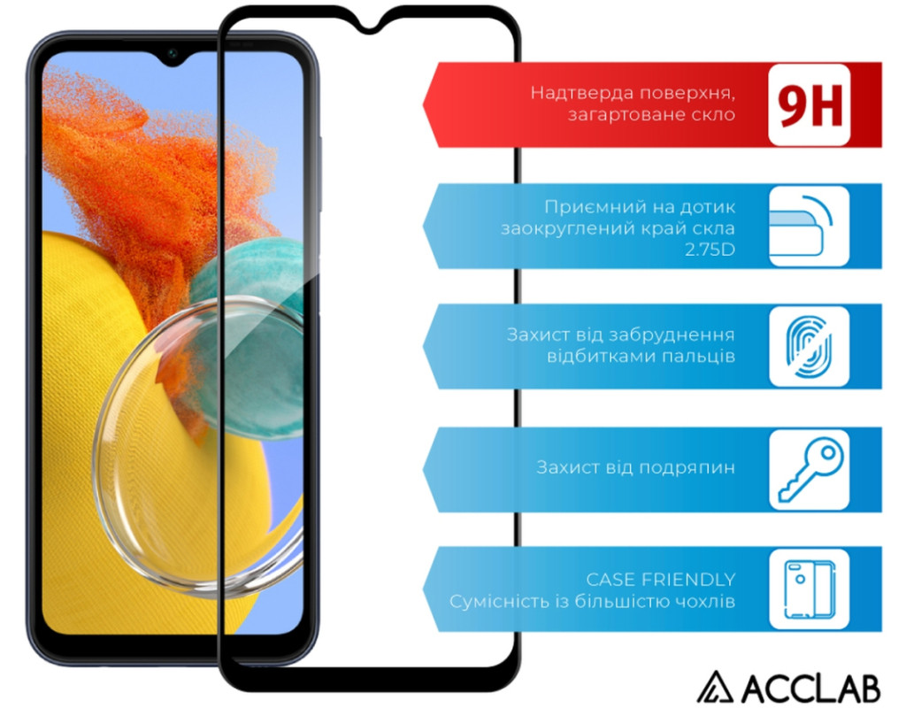 Скло захисне ACCLAB Full Glue Samsung M14 Black (1283126579882)