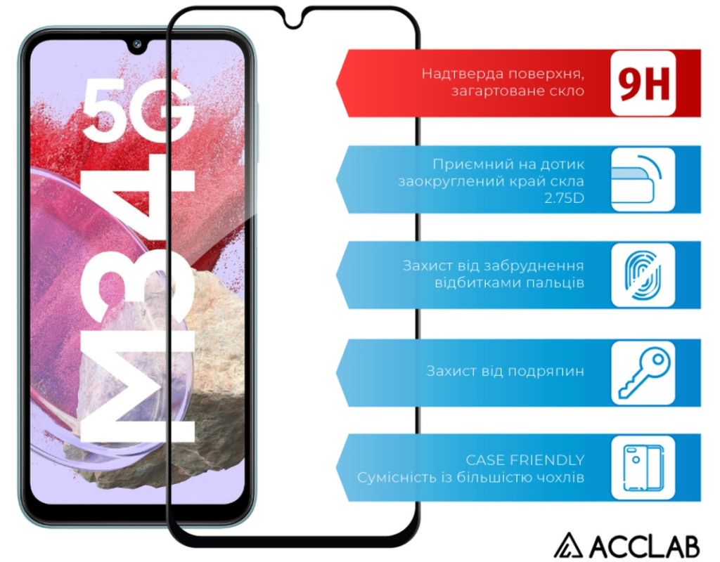 Скло захисне ACCLAB Full Glue Samsung M34 5G Black (1283126575723)