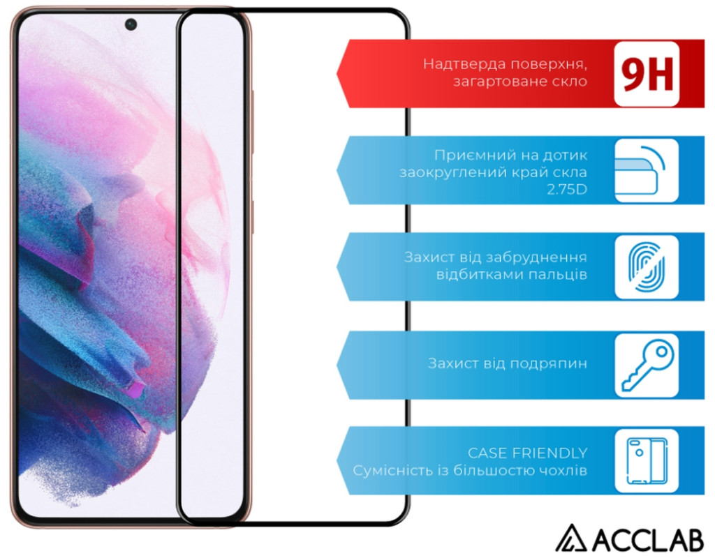 Скло захисне ACCLAB Full Glue Samsung S21 (G991) Black (1283126510519)