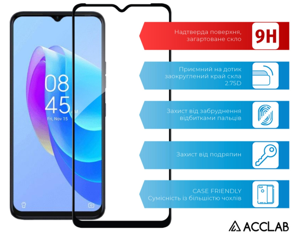 Скло захисне ACCLAB Full Glue Tecno Spark 10C Black (1283126564888)