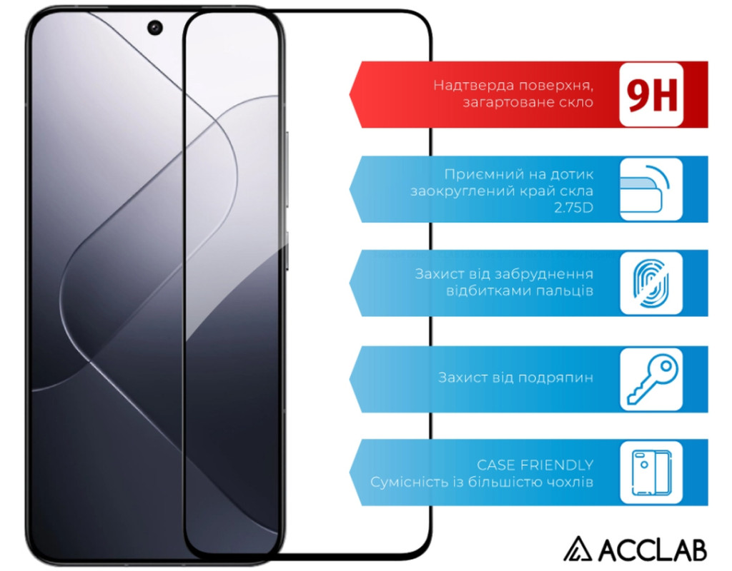 Скло захисне ACCLAB Full Glue Xiaomi 14 Black (1283126591280)