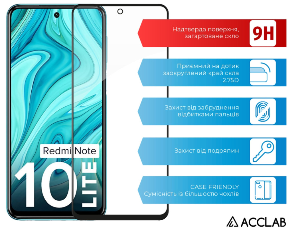 Скло захисне ACCLAB Full Glue Xiaomi Redmi Note 10 Lite Black (1283126517938)