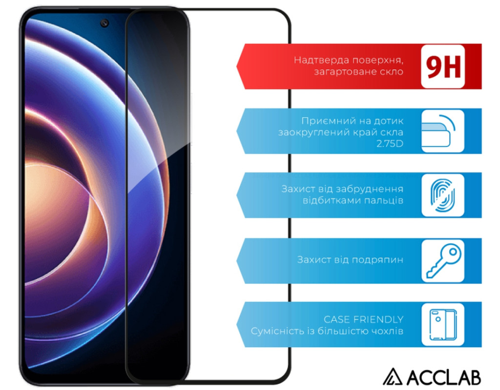 Скло захисне ACCLAB Full Glue Xiaomi Redmi Note 12R Black (1283126589836)