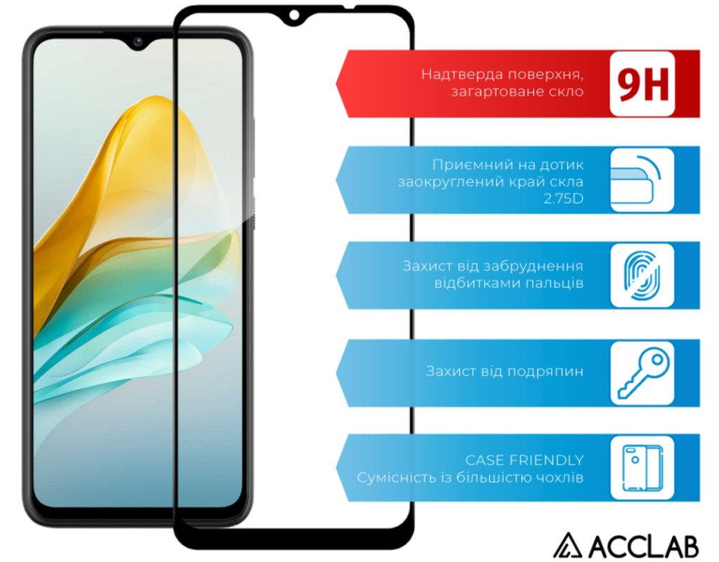 Скло захисне ACCLAB Full Glue ZTE Blade A53 Black (1283126583278)