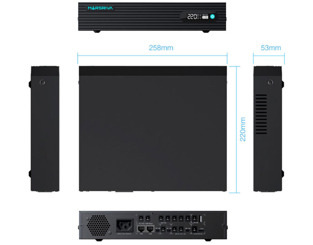 | ДБЖ Marsriva DC UPS KP9 Pro 12xDC+PoE24VGigabit1A+USB, 14V/16V/19V/24V/48V/53V 240VAC 100W 24000mAh |