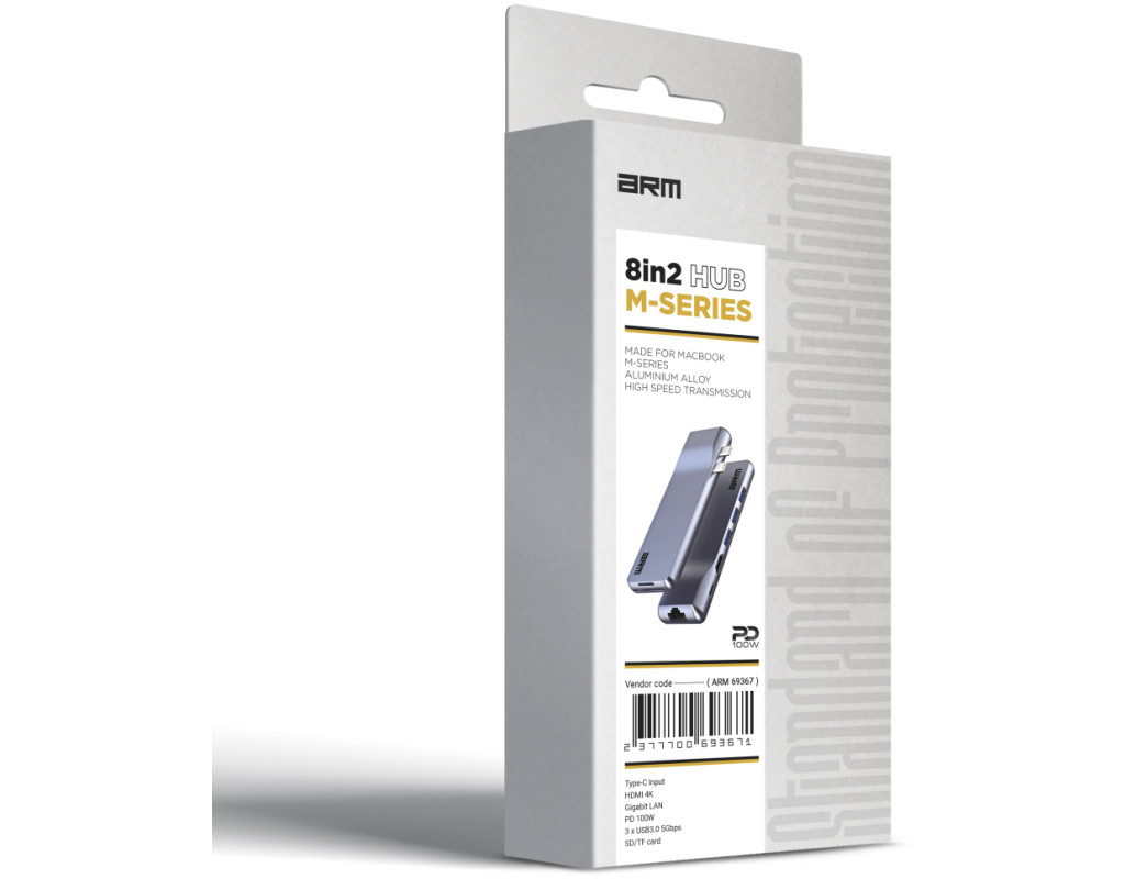 Стильний дизайн та високоякісні матеріали Мініатюрний та стильний дизайн у сірому кольорі забезпечує відмінний вигляд та легку ідентифікацію пристрою. Корпус хаба виготовлений з високоякісного алюмінієвого сплаву, що надає йому міцність та надійність. Цей матеріал забезпечує високий рівень стійкості до пошкоджень та зносу під час повсякденного використання. Крім того, кабель хаба виконаний у вигляді обплетення, що забезпечує додатковий захист і довговічність. Такий підхід до матеріалів та конструкції корпусу дозволяє забезпечити не лише естетичний зовнішній вигляд, але й додатковий захист від зовнішніх впливів, зберігаючи при цьому високу функціональність пристрою протягом тривалого часу. Цей хаб USB-C ArmorStandart For MacBook M-Series HD4K+LAN+PD+3USB+TF/SDcard Grey є ідеальним рішенням для розширення можливостей вашого MacBook серії M, забезпечуючи розширений функціонал та зручність в користуванні. Особливості