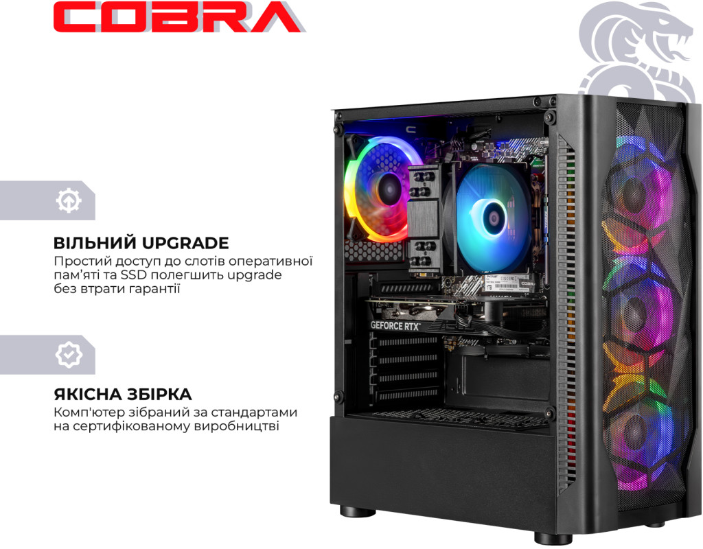 Професійна збірка комп"ютера COBRA забезпечить оптимальний повітряний потік всередині корпусу, а значить і відмінне охолодження всіх компонентів ПК.
