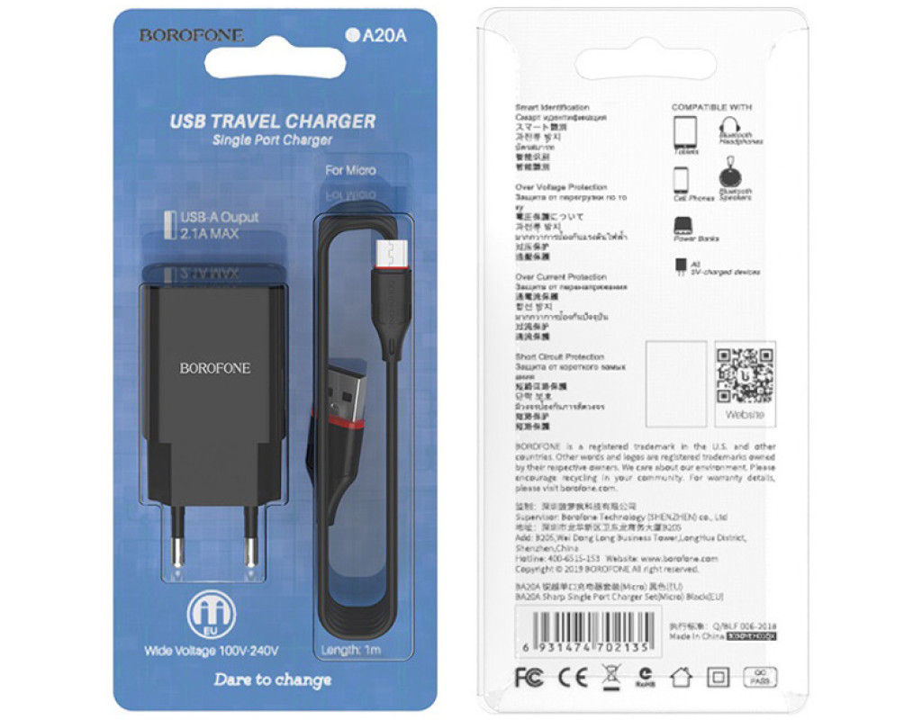 | Зарядний пристрій BOROFONE BA20A Sharp USB – це високоякісний адаптер, який забезпечує швидке та надійне живлення від мережі для вашої електроніки. Він оснащений одним USB-A портом і високоякісним кабелем USB to Micro 5P, який чудово підходить для зарядки смартфонів, TWS навушників, фітнес-браслетів, смарт годинників, екшн-камер та рацій. За допомогою максимального вихідного струму 2.1 А та потужності 10.5 Вт цей зарядний пристрій гарантує швидку зарядку, мінімізуючи ризик перегріву або пошкодження батареї. Виготовлений з вогнетривких матеріалів ABS+PC, BOROFONE BA20A забезпечує не тільки міцність, а й безпеку використання. Інтелектуальна мікросхема та інтегровані рівні захисту роблять процес зарядки стабільним і безпечним для будь-яких гаджетів. Євростандартна вилка дозволяє використовувати пристрій у різних країнах без жодних проблем. Його компактний розмір (79 x 38 x 24 мм) та легка вага всього 28 грамів роблять його ідеальним вибором для подорожей або повсякденного використання – він легко поміститься у вашій сумці. BOROFONE BA20A – це супутник, на якого ви можете покластися, забезпечуючи безперебійну роботу ваших пристроїв у будь-якій ситуації. |
