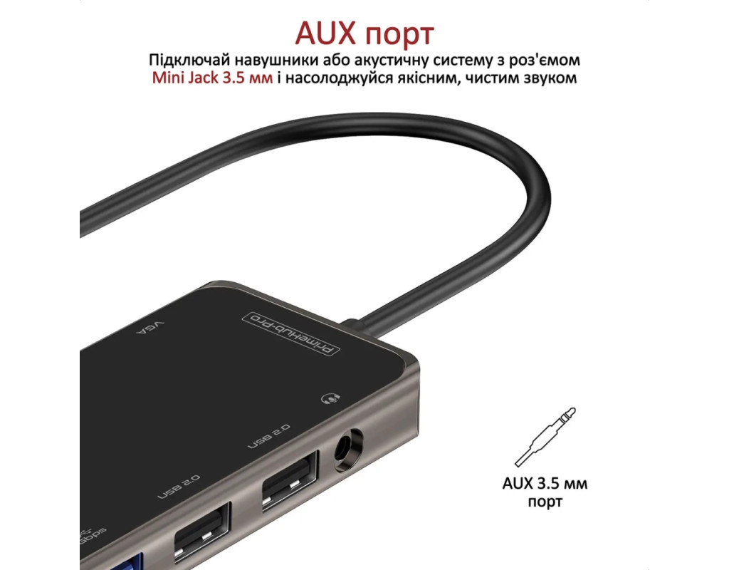- Якісні матеріали: Легкий і надійний USB-хаб з анодованого алюмінію з антиковзкими накладками із софттачгуми, не перегрівається й має великий запас міцності.