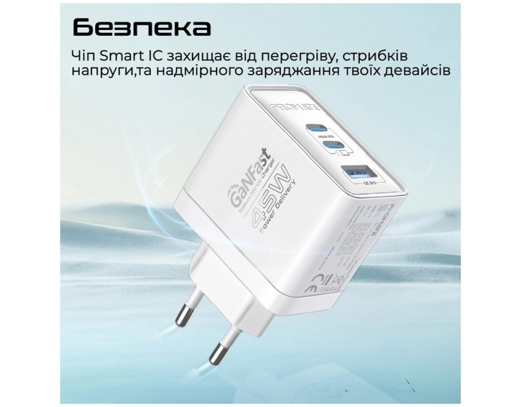 | Зарядний пристрій Promate PowerPort-45 є справжнім прикладом інновацій та високої якості. Використання передових компонентів з нітриду галію робить його не лише компактнішим, а й вражаюче енергоефективним. Завдяки технології GanFast, на яку спирається цей адаптер, ви отримуєте збільшену на 40% енергоефективність і компактніший дизайн, що на 50% менше в порівнянні зі звичайними зарядними пристроями. Promate PowerPort-45 призначений для повсякденного використання і є незамінним для власників смартфонів, планшетів, фітнес-браслетів та інших електронних гаджетів. Він оснащений трьома потужними портами: 2xUSB-C та 1xUSB-A. Завдяки цим портам ви зможете швидко заряджати до трьох пристроїв одночасно з загальною потужністю до 45 Вт. Порти USB-C підтримують Power Delivery, що дозволяє працювати в режимах 5V/3A, 9V/3A, 12V/3A, 15V/3A, 20V/2.25A, надаючи можливість блискавичної зарядки. USB-A порт з Quick Charge 3.0 забезпечує потужність до 22.5W. Однією з ключових переваг Promate PowerPort-45 є його адаптивне заряджання. Завдяки вбудованому чіпу Smart IC, він автоматично підбирає оптимальний рівень потужності для кожного пристрою, захищаючи його від перегріву, стрибків напруги, короткого замикання та надмірного заряджання. Цей зарядний пристрій стане вашим надійним супутником, адже його компактний розмір і легка вага роблять його ідеальним для подорожей. Відчуйте переваги передових технологій з Promate PowerPort-45 і забезпечте свої пристрої надійним живленням, куди б ви не подорожували. |