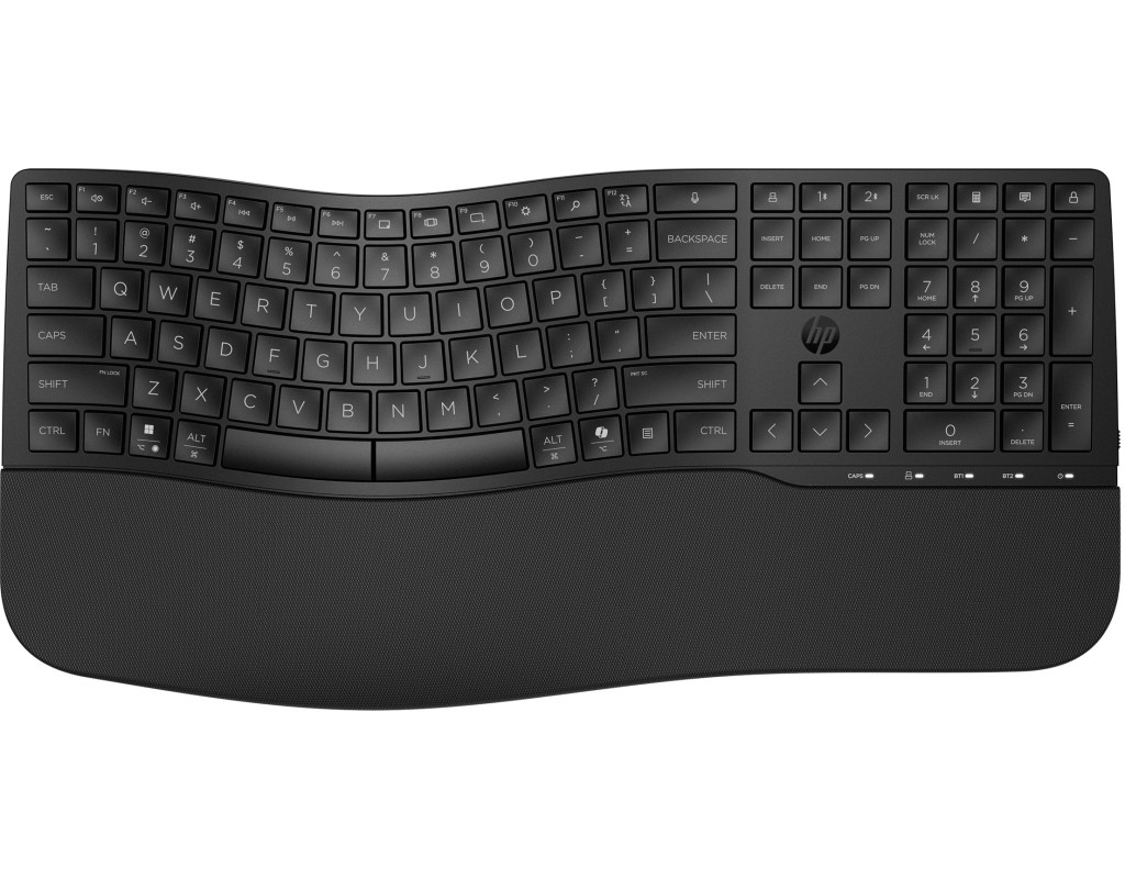 | Комплект HP 680 Comfort Dual‑Mode включає клавіатуру і мишу з підтримкою підключення по Bluetooth або через USB‑донгл. Клавіатура зручна завдяки трьом кутам нахилу, подушці для зап’ясть і низькопрофільним клавішам. Має 23 програмовані клавіші, включаючи спеціальну кнопку Copilot, а мишка з 7 кнопками і коліщатком 4D підтримує до 4000 DPI. Корпус виготовлений із 55 % вторинного пластику, сумісний з Windows, macOS та ChromeOS — стильний, екологічний і функціональний комплект. Конструкція та комфорт Комплект HP 680 Comfort Dual‑Mode включає повнорозмірну клавіатуру з ножичним механізмом і м’якою подушкою для зап’ястків та мишу з боковими накладками для комфорту. Клавіатура має три кути нахилу — плоский, нейтральний і негативний — завдяки чому руки завжди у натуральному положенні. Підключення та програмованість Обидва пристрої підтримують підключення до трьох пристроїв (два по Bluetooth та один через USB‑донгл HP Unifying). Клавіатура має 23 програмовані клавіші, включно з Copilot‑кнопкою. Миша оснащена 7 кнопками, зокрема для регулювання DPI (до 4000) та 4D коліщатком для горизонтального та вертикального скролу. Матеріали та екологія Використано 55 % переробленого пластику для виготовлення корпусів, клавіатура постачається у FSC‑сертифікованій упаковці. Це дозволяє мінімізувати вплив на навколишнє середовище і підтримувати більш сталий спосіб життя. Сумісність та ресурси Сумісні з Windows 10/11, macOS, ChromeOS. Працюють через USB-A або Bluetooth із підтримкою Swift Pair. Живлення — 3 AA батарейки: до 36 місяців роботи клавіатури та до 20 місяців у мишці. Для кого Ідеальний набір для офісу, дому, навчання або гібридної роботи. Підійде тим, хто цінує зручність, екологічність, сучасний дизайн та довготривалу автономність. Ключ до ШІ За допомогою однієї клавіші на клавіатурі отримайте доступ до можливостей Microsoft Copilot – помічника на основі ШІ, який допоможе вам спростити завдання, співпрацювати та працювати ефективніше. HP Unifying Dongle Легко підключайтеся до кількох пристроїв. Підключайте мишу до восьми пристроїв за допомогою адаптера Nano USB-A або до трьох пристроїв через 2.4G Bluetooth®. Безпечно дезінфікувати Ця комбінація, яку легко чистити, була розроблена, щоб витримувати дію побутових дезінфікуючих серветок до 1000 разів. До 20 місяців (миша) і 36 місяців (клавіатура) роботи від батареї. До 20 місяців роботи від 1 батарейки AA (миша); До 36 місяців роботи від 2 батарейок AA (клавіатура). Let me know if you need any furth Режим швидкої прокрутки Легко регулюйте швидкість прокручування відповідно до своїх потреб. Швидко гортайте вебсторінки чи рядки коду за допомогою коліщатка швидкого прокручування. Прокручування в 4 напрямках Ефективніше працюйте з електронними таблицями, прокручуйте вгору та вниз, а також з боку в бік. |