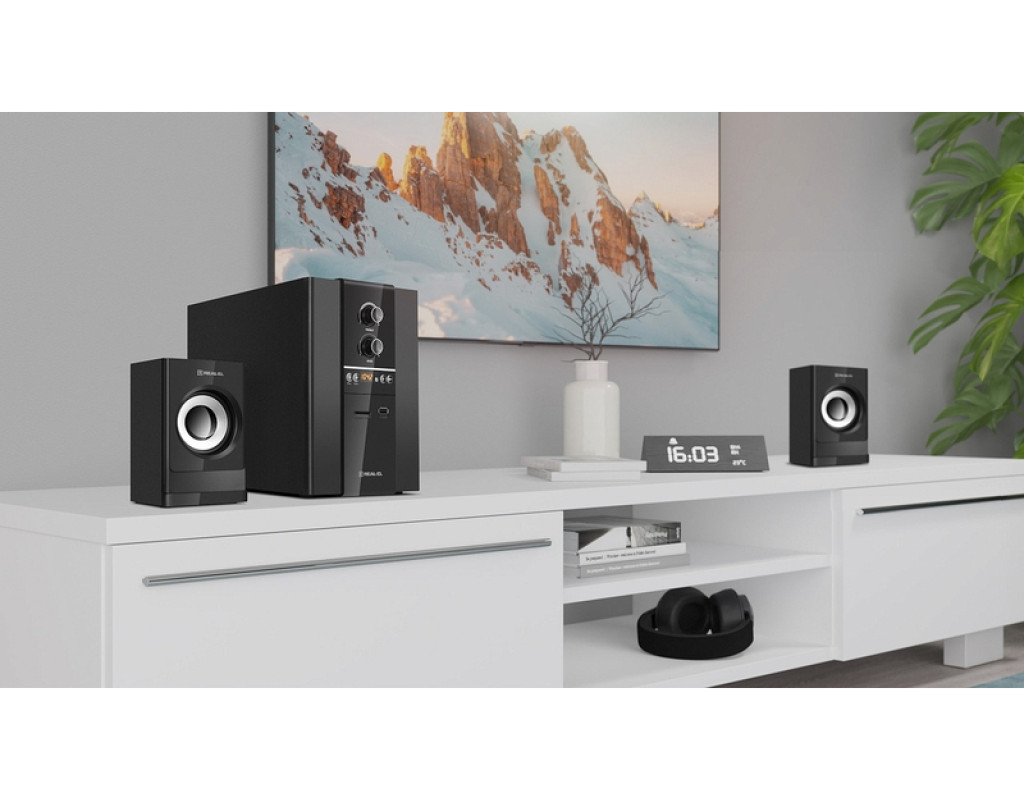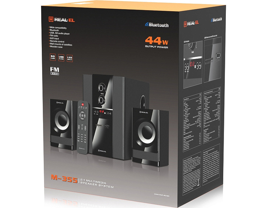 | Акустична система REAL-EL M-355 Black (EL121300015) — це сучасне рішення для справжніх поціновувачів якісного звуку, яке поєднує в собі інноваційні технології та стильний дизайн. Ця система створена, щоб забезпечити незабутні аудіовраження, чи то під час прослуховування улюбленої музики, перегляду фільмів або організації запалюючих домашніх вечірок. Серце системи — потужний сабвуфер із потужністю 20 Вт, виготовлений з комбінації MDF та пластику. Він гарантує глибоке та насичене звучання басів, додаючи глибині кожному трекові. Два сателіти з загальною потужністю 24 Вт доповнюють систему, забезпечуючи відмінну якість об'ємного звучання. Така конфігурація з 2.1 канальним та двополосним звуком створює ідеальний баланс між високими та низькими частотами, занурюючи вас у атмосферу справжньої музичної насолоди. Бездротове підключення по Bluetooth відкриває нові можливості, дозволяючи легко інтегрувати систему з будь-якими вашими пристроями без зайвого нагромадження дротів. Ви можете відтворювати улюблену музику з гаджетів без жодних обмежень свободи. Підтримка USB та SD роз'ємів забезпечує простору можливість програвати плейлисти прямо з зовнішніх носіїв, а наявність AUX-входу гарантує універсальність, дозволяючи під'єднувати систему до різних аудіоджерел, таких як комп'ютери чи телевізори. Однією з вражаючих особливостей цієї акустичної системи є LED підсвічування, яке додає вишуканості й сучасності вашому простору. Воно не тільки естетично приваблює, а й підсилює атмосферу будь-якого заходу. Стильна панель керування з LED-дисплеєм робить процес налаштування інтуїтивно зрозумілим і легким. Бездротовий пульт дистанційного управління надає вам можливість змінювати гучність, перемикати треки або регулювати баси і високі частоти, не відриваючись від улюблених справ. Особливу увагу приділено дизайну: сабвуфер з дерев’яними акцентами не тільки прикрашає інтер’єр, але й покращує акустичні властивості, підкреслюючи частотні характеристики. Це демонструє, що система REAL-EL M-355 Black є не лише візуально привабливою, але й акустично ефективною. Маючи вагу всього 4.1 кг, ця система ідеально підходить для розміщення на полицях, що дозволяє ефективно використовувати простір приміщення. Вона легко впорається з будь-яким завданням — від прослуховування музики до супроводу фільмів або комп'ютерних ігор, надаючи вашому звуковому світу новий вимір. REAL-EL M-355 Black (EL121300015) — це більше, ніж просто акустична система. Це справжня знахідка для тих, хто цінує нові стандарти комфорту в управлінні звуком і естетикою. Без сумнівів, вона додає яскравих відтінків в звичайні дні і стане надійним партнером у створенні незабутніх аудіомоментів у вашому житті. |