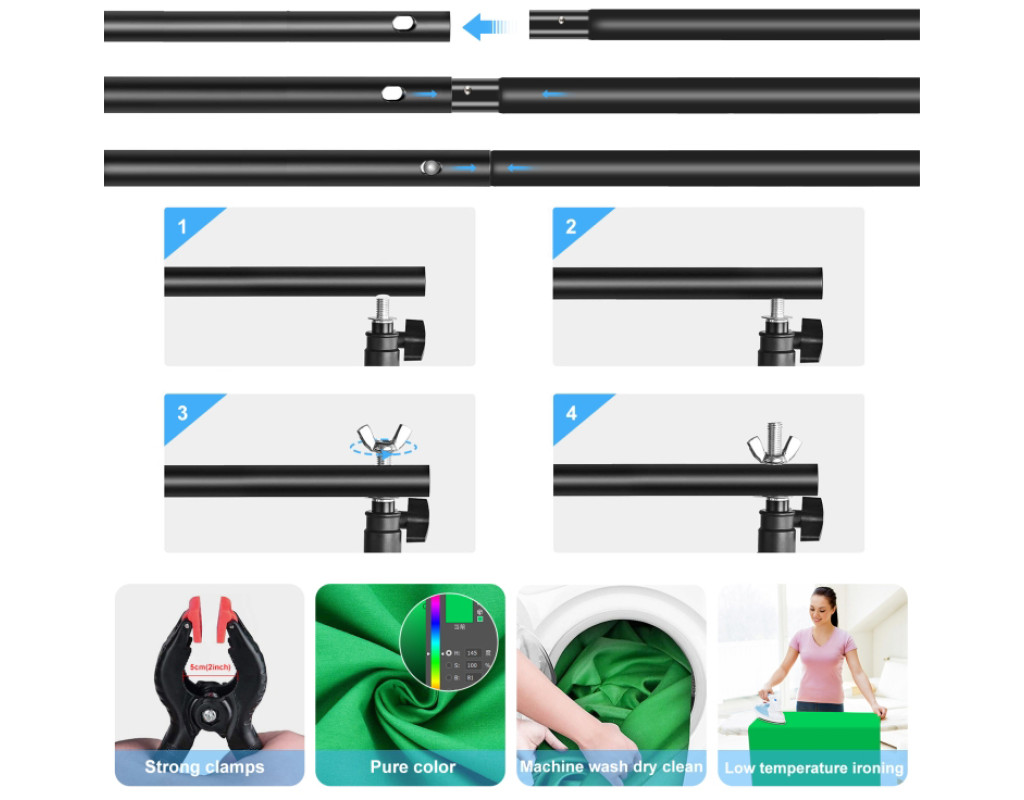 Закріпіть секційні поперечки, поверніть ергономічну ручку на штативі, щоб встановити висоту та зафіксуйте її, можна легко встановити без інструментів і за лічені хвилини.