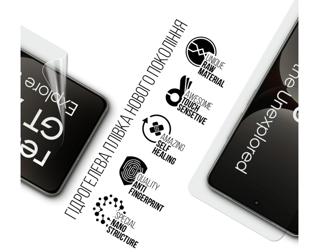 Призначення - для телефону, Вид покриття - глянсове, гідрогелева, Сумісність з моделями - Realme GT 7T, Підходить для телефонів з діагоналлю - 6.8", Кількість в упаковці - 1 шт