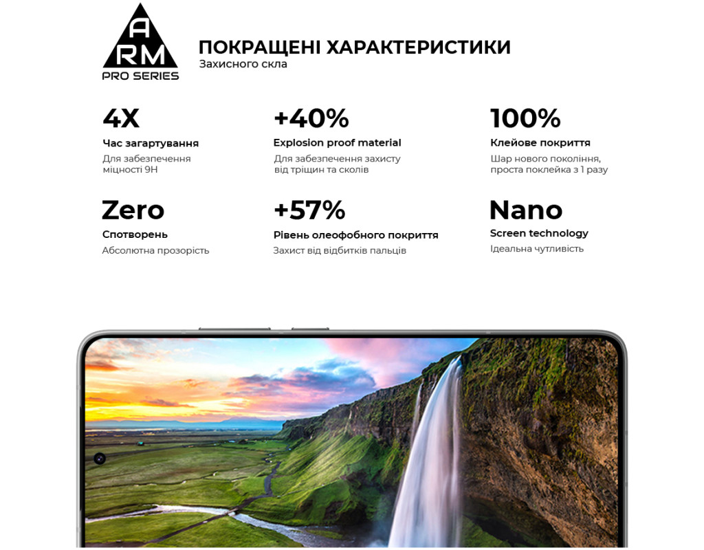 Захисне скло Armorstandart Pro Series - це абсолютно новий рівень захисту дисплея смартфона. У виробництві використовується матеріал Japenese Asahi Glass, який проходить загартування впродовж 4 годин. Це забезпечує ідеальну прозорість захисного покриття без спотворень зображення, а також потужний захист від тріщин і подряпин. Скло ніяк не впливає на чуйність тачскрина. У ньому міститься спеціальний матеріал, що перешкоджає появі відколів. Верхня частина скла містить покращене олеофобне й гідрофобне покриття. Під час використання скла це забезпечує природні тактильні відчуття - пальці легко ковзають по поверхні. Водночас зображення відбивається з автентичною яскравістю й чіткістю без спотворень. Задня частина по всій площі покрита клейовою основою нового покоління. Завдяки цьому досягається повний брак пухирців і можливість переклеювання скла в разі первісного нерівного встановлення. Захисне скло Armorstandart Pro Series має оптимальні габарити та товщину на 0,3 мм. Передбачено вирізи під усі датчики, камери та роз'єми. До комплекту входить усе потрібне для швидкого та комфортного встановлення. Особливості: