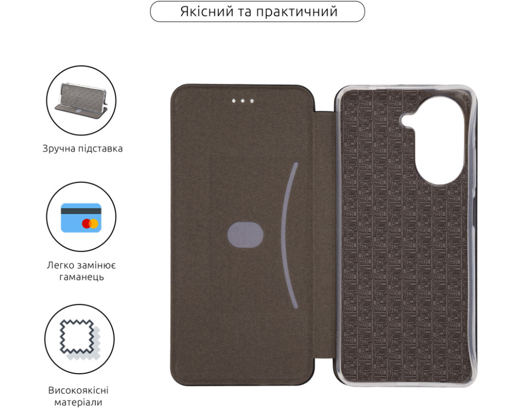 Чохол-книжка G-Case з магнітною застібкою — це стильний аксесуар, а також прекрасний захист для вашого смартфона. Він надійно захищає смартфон від подряпин, падінь та інших різних ушкоджень. Магнітна застібка щільно фіксує верхню частину чохла, на якій розташовується металева накладка — завдяки цьому мобільний пристрій завжди захищений від небажаного потрапляння бруду, вологи та пилу. Смартфон утримується в щільній і гнучкій силіконовій капсулі, яка захистить його у разі падіння, а також допоможе зберегти гарний зовнішній вигляд — на корпусі пристрою не залишиться подряпин та інших слідів експлуатації. Місткий картхолдер, який розташовується у внутрішній частині чохла, здатний легко замінити гаманець і прекрасно вміщує в собі банківські картки, а також купюри різного номіналу. |