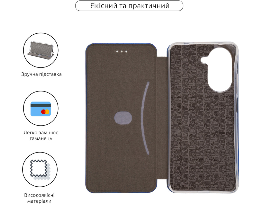 Чохол-книжка G-Case з магнітною застібкою — це стильний аксесуар, а також прекрасний захист для вашого смартфона. Він надійно захищає смартфон від подряпин, падінь та інших різних ушкоджень. Магнітна застібка щільно фіксує верхню частину чохла, на якій розташовується металева накладка — завдяки цьому мобільний пристрій завжди захищений від небажаного потрапляння бруду, вологи та пилу. Смартфон утримується в щільній і гнучкій силіконовій капсулі, яка захистить його у разі падіння, а також допоможе зберегти гарний зовнішній вигляд — на корпусі пристрою не залишиться подряпин та інших слідів експлуатації. Місткий картхолдер, який розташовується у внутрішній частині чохла, здатний легко замінити гаманець і прекрасно вміщує в собі банківські картки, а також купюри різного номіналу. |