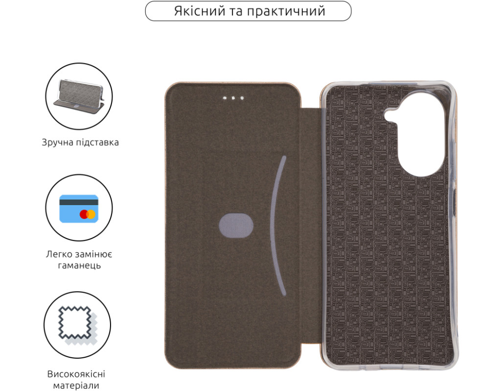Чохол-книжка G-Case з магнітною застібкою — це стильний аксесуар, а також прекрасний захист для вашого смартфона. Він надійно захищає смартфон від подряпин, падінь та інших різних ушкоджень. Магнітна застібка щільно фіксує верхню частину чохла, на якій розташовується металева накладка — завдяки цьому мобільний пристрій завжди захищений від небажаного потрапляння бруду, вологи та пилу. Смартфон утримується в щільній і гнучкій силіконовій капсулі, яка захистить його у разі падіння, а також допоможе зберегти гарний зовнішній вигляд — на корпусі пристрою не залишиться подряпин та інших слідів експлуатації. Місткий картхолдер, який розташовується у внутрішній частині чохла, здатний легко замінити гаманець і прекрасно вміщує в собі банківські картки, а також купюри різного номіналу. |
