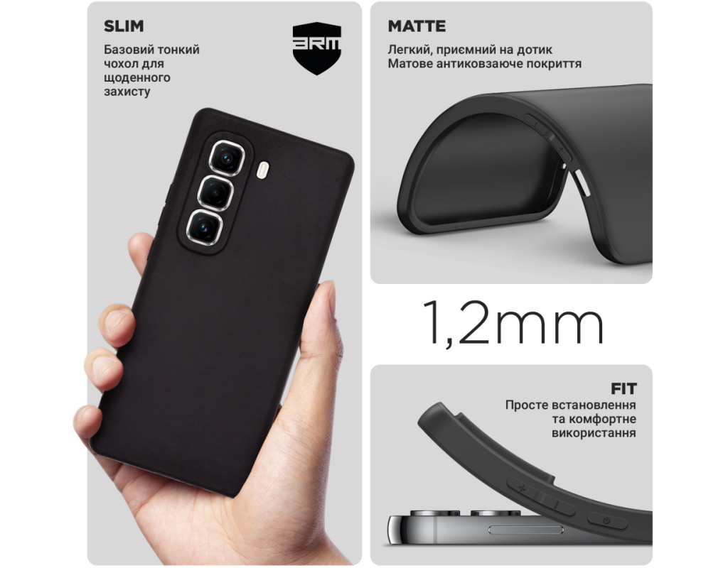 Чохол ArmorStandart Matte Slim Fit - це базовий захисний чохол для смартфона, який поєднує в собі простоту та ефективний захист. Виготовлений із термопластичного поліуретану (TPU), він забезпечує надійний захист вашого пристрою від подряпин, потертостей і ударів, зберігаючи його компактність і легкість. Тонкий дизайн чохла не додає зайвого об'єму вашому смартфону, але при цьому забезпечує ефективний захист у разі падінь та ударів. Всі функціональні вирізи та кнопки пристрою доступні без обмежень, що дозволяє зручно користуватися вашим смартфоном у будь-який час. Чохол сумісний із більшістю захисних плівок та склом, що дозволяє додатково захистити екран від подряпин і тріщин. Присутній захисний бортик навколо дисплея додає додатковий шар захисту, захищаючи його від пошкоджень при падінні чи зіткненні з різними поверхнями. Особливості: