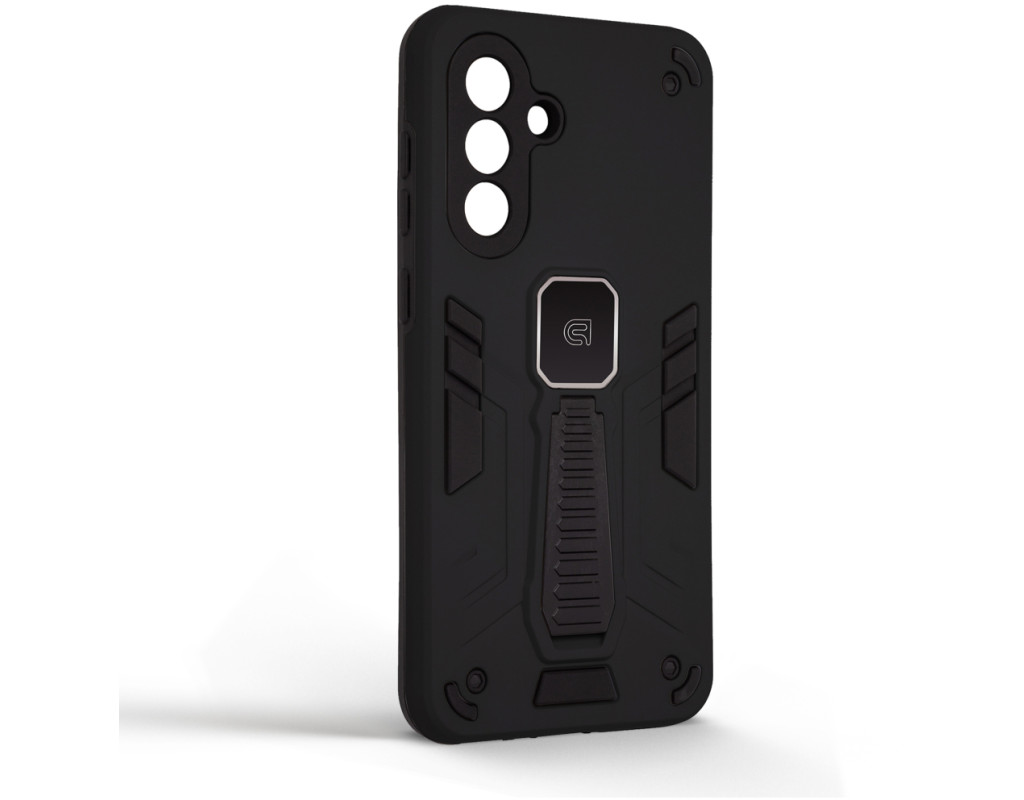 ArmorStandart Proover — це захисний чохол, створений для тих, хто шукає надійність, практичність і продумані деталі. Він забезпечує повноцінний захист смартфона, зберігаючи його функціональність та первісний стан у щоденному використанні. Конструкція поєднує два матеріали: м’який термопластичний поліуретан (TPU) ефективно поглинає удари та запобігає подряпинам, а зовнішній шар із полікарбонату (PC) захищає від механічних пошкоджень і потертостей. Посилені кути мінімізують ризик ушкоджень під час падінь, а блок камери повністю закритий, що забезпечує додатковий захист об’єктивів від подряпин і ударів. На спинці чохла вбудована металева пластина, яка дозволяє використовувати його з магнітними авто-тримачами, забезпечуючи комфорт і безпеку під час керування автомобілем. Чохол оснащений зручною відкидною підставкою, яка дозволяє встановити смартфон горизонтальному або вертикальному положенні для комфортного перегляду відео, відеодзвінків або роботи з контентом. Матове покриття приємне на дотик, стійке до відбитків пальців і подряпин. Особливості: