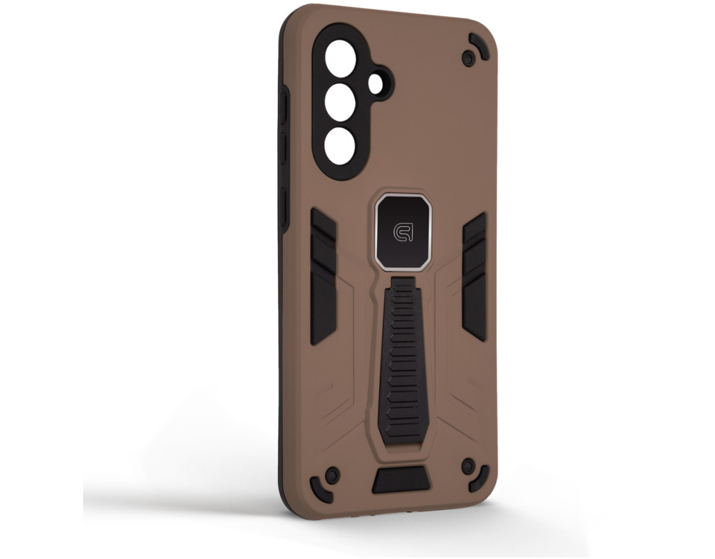 ArmorStandart Proover — це захисний чохол, створений для тих, хто шукає надійність, практичність і продумані деталі. Він забезпечує повноцінний захист смартфона, зберігаючи його функціональність та первісний стан у щоденному використанні. Конструкція поєднує два матеріали: м’який термопластичний поліуретан (TPU) ефективно поглинає удари та запобігає подряпинам, а зовнішній шар із полікарбонату (PC) захищає від механічних пошкоджень і потертостей. Посилені кути мінімізують ризик ушкоджень під час падінь, а блок камери повністю закритий, що забезпечує додатковий захист об’єктивів від подряпин і ударів. На спинці чохла вбудована металева пластина, яка дозволяє використовувати його з магнітними авто-тримачами, забезпечуючи комфорт і безпеку під час керування автомобілем. Чохол оснащений зручною відкидною підставкою, яка дозволяє встановити смартфон горизонтальному або вертикальному положенні для комфортного перегляду відео, відеодзвінків або роботи з контентом. Матове покриття приємне на дотик, стійке до відбитків пальців і подряпин. Особливості:
