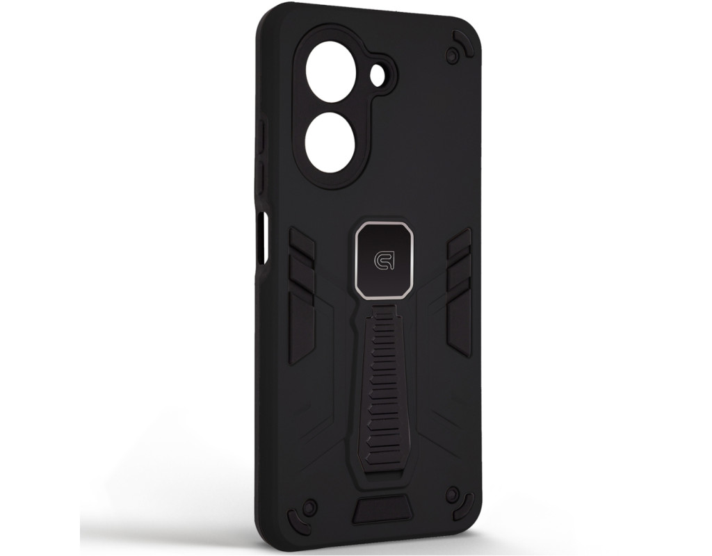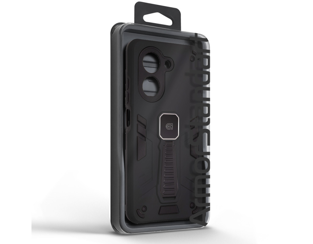 ArmorStandart Proover — це захисний чохол, створений для тих, хто шукає надійність, практичність і продумані деталі. Він забезпечує повноцінний захист смартфона, зберігаючи його функціональність та первісний стан у щоденному використанні. Конструкція поєднує два матеріали: м’який термопластичний поліуретан (TPU) ефективно поглинає удари та запобігає подряпинам, а зовнішній шар із полікарбонату (PC) захищає від механічних пошкоджень і потертостей. Посилені кути мінімізують ризик ушкоджень під час падінь, а блок камери повністю закритий, що забезпечує додатковий захист об’єктивів від подряпин і ударів. На спинці чохла вбудована металева пластина, яка дозволяє використовувати його з магнітними авто-тримачами, забезпечуючи комфорт і безпеку під час керування автомобілем. Чохол оснащений зручною відкидною підставкою, яка дозволяє встановити смартфон горизонтальному або вертикальному положенні для комфортного перегляду відео, відеодзвінків або роботи з контентом. Матове покриття приємне на дотик, стійке до відбитків пальців і подряпин. Особливості: