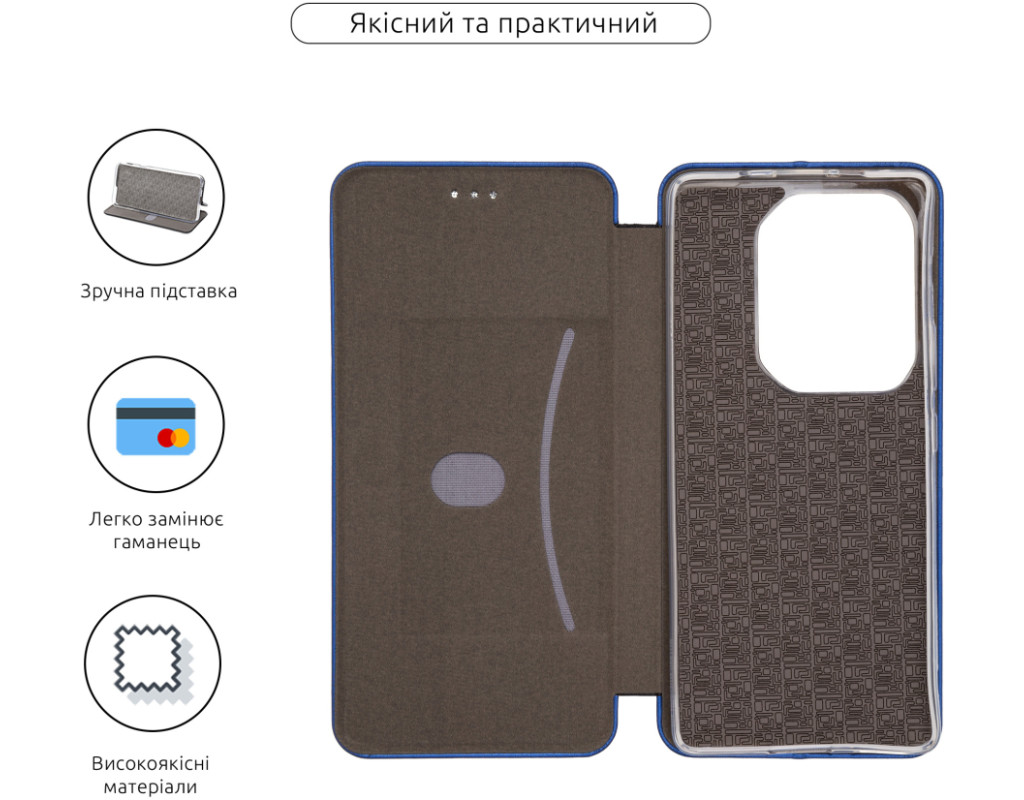 Чохол-книжка G-Case з магнітною застібкою — це стильний аксесуар, а також прекрасний захист для вашого смартфона. Він надійно захищає смартфон від подряпин, падінь та інших різних ушкоджень. Магнітна застібка щільно фіксує верхню частину чохла, на якій розташовується металева накладка — завдяки цьому мобільний пристрій завжди захищений від небажаного потрапляння бруду, вологи та пилу. Смартфон утримується в щільній і гнучкій силіконовій капсулі, яка захистить його у разі падіння, а також допоможе зберегти гарний зовнішній вигляд — на корпусі пристрою не залишиться подряпин та інших слідів експлуатації. Місткий картхолдер, який розташовується у внутрішній частині чохла, здатний легко замінити гаманець і прекрасно вміщує в собі банківські картки, а також купюри різного номіналу. |