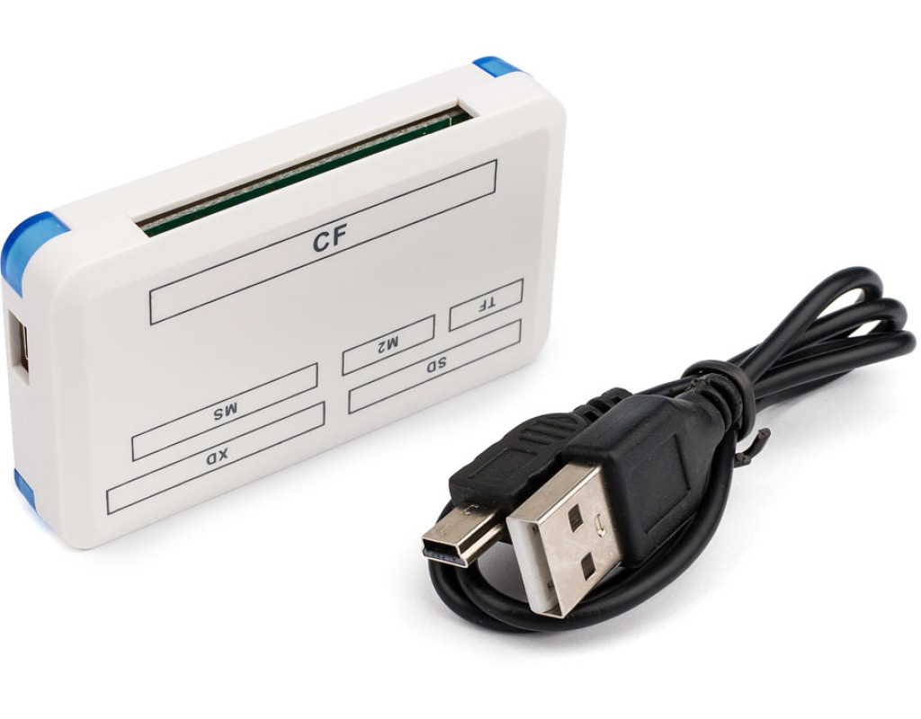 | Картридер - це пристрій, призначений для читання інформації з карток пам’яті, таких як картки SD, microSD, CompactFlash та інших. Зовні картридери можуть сильно відрізнятися, але найчастіше вони є невеликим прямокутним або квадратним блоком з роз’ємами для підключення карт пам’яті. Підключаються до комп’ютера або ноутбука, як правило, через порт USB. |