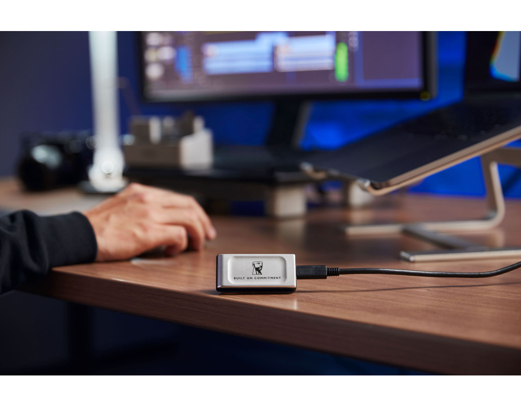 | Накопичувач SSD USB Type-C 1TB XS2000 Kingston (SXS2000/1000GA) втілює досконалість у світі цифрових технологій, поєднуючи в собі бездоганну якість та інноваційні рішення. Розроблений з використанням сучасної технології 3D NAND, цей зовнішній накопичувач гарантує виняткову надійність та довговічність, що робить його ідеальним вибором для тих, хто цінує ефективність та стабільність. Інтерфейс підключення USB 3.2 Type-C відкриває двері до неймовірної швидкості передачі даних — до 2000 МБ/с при читанні та записі. Це дозволяє без затримок керувати великими файлами: від відео у форматі 8K до масштабних колекцій зображень. Така продуктивність забезпечує новий рівень комфорту для професійних фотографів, відеографів та всіх, хто потребує швидкого доступу до великої кількості даних. Неперевершена портативність є ще однією перевагою цього пристрою. Вага лише 59 г робить його ідеальним компаньйоном у дорозі, легко вміщуючи його навіть у найменшу кишеню. До того ж, міцний знімний чохол надає захист від води і пилу на рівні IP55, що додає впевненості у збереженні важливих даних у найсуворіших умовах. Сумісність з різними пристроями, без необхідності додаткових компонентів, підкреслює універсальність XS2000. Завдяки об'єму пам'яті у 1 ТБ, цей накопичувач стає вашим надійним партнером у збереженні будь-якої інформації, незалежно від її обсягів. Пориньте у світ бездоганної швидкості, надійності та елегантності разом з Kingston XS2000, вашим незамінним супутником у цифровій епосі. |