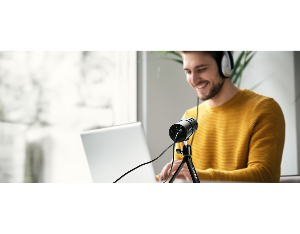 - Зручний для стримінгу, подкастів та ігор — оптимізований для створення професійного контенту завдяки якісному звуку.