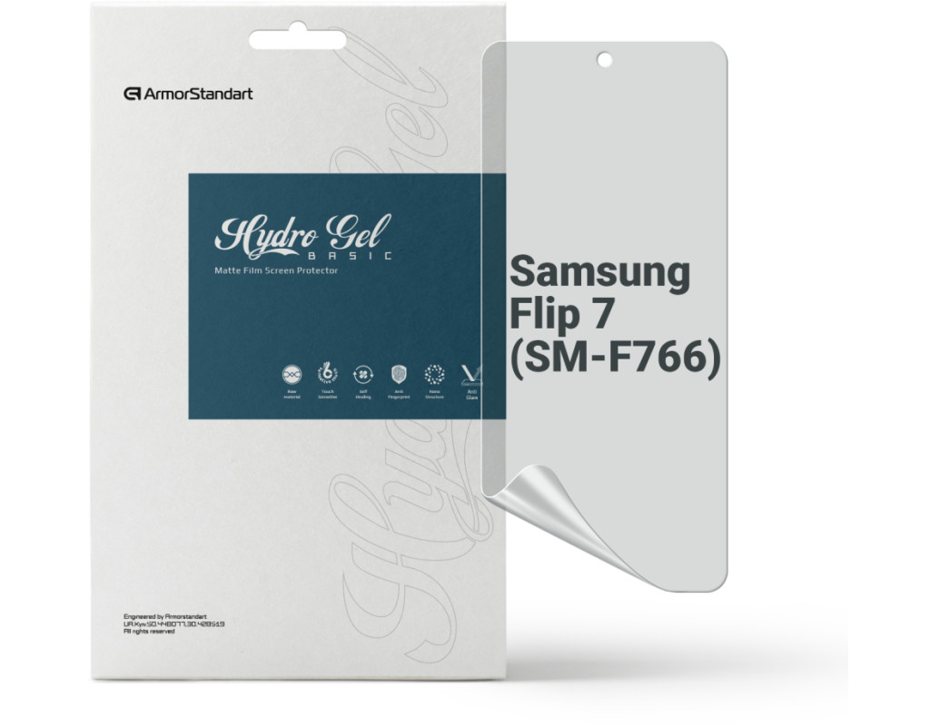 Призначення - для телефону, Вид покриття - матове, гідрогелева, Сумісність з моделями - Samsung Galaxy Flip7, Підходить для телефонів з діагоналлю - 6.9", Особливості - матова, Кількість в упаковці - 1 шт