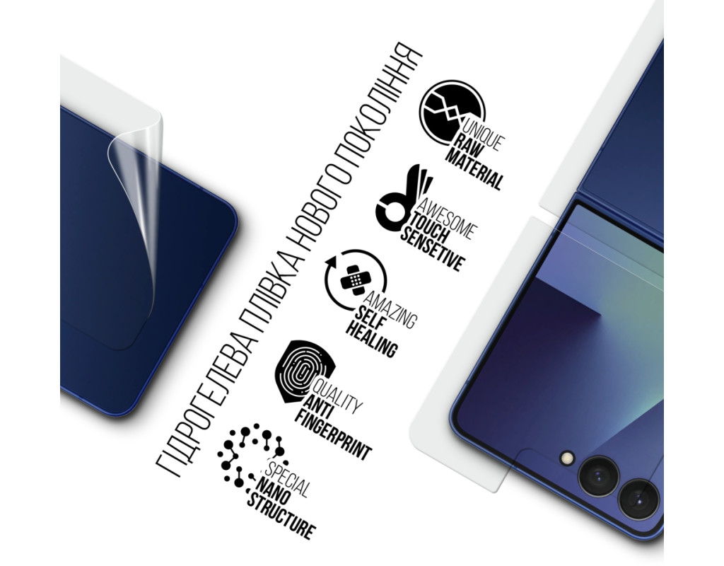 Призначення - для телефону, Вид покриття - глянсове, гідрогелева, Сумісність з моделями - Samsung Galaxy Flip7, Підходить для телефонів з діагоналлю - 6.9", Кількість в упаковці - 1 шт