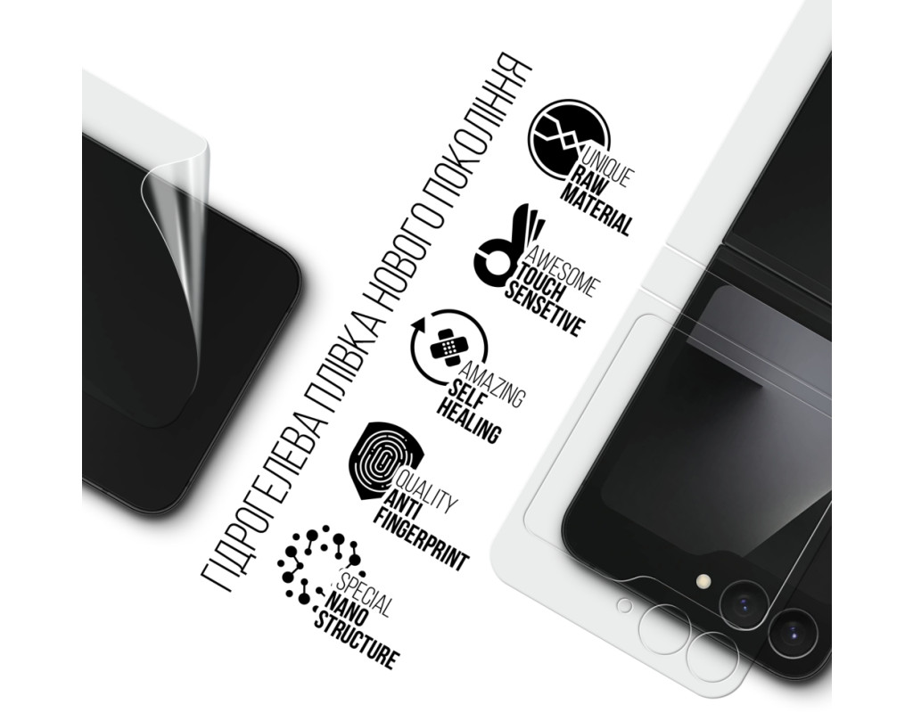 Призначення - для телефону, Вид покриття - глянсове, гідрогелева, Сумісність з моделями - Samsung Galaxy Flip 7 FE, Підходить для телефонів з діагоналлю - 6.7", Кількість в упаковці - 1 шт