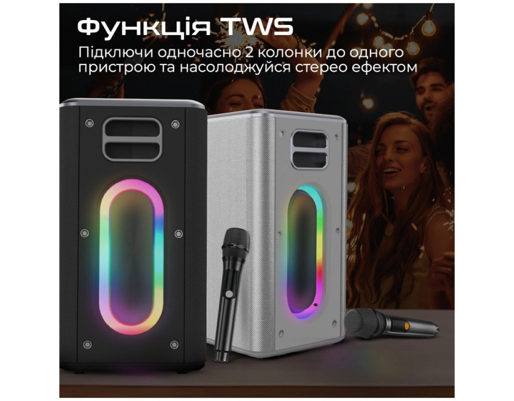 | Акустична система HiFuture MusicBox 100W Silver (musicbox.silver) — це ідеальне поєднання потужності, стилю та сучасних технологій, яке створено для справжніх поціновувачів музики. Ця портативна колонка зможе стати вашим надійним компаньйоном як у домашньому затишку, так і на активній вечірці. Об'ємний звук з MusicBox вражає наповненістю та чіткістю завдяки чотирьом динамікам сумарною потужністю 100W. Поєднання двох сабвуферів 30W і двох твіттерів 20W забезпечує глибокі баси та кристально чисті високі частоти. Ці характеристики роблять систему ідеальною для будь-яких музичних стилів, від класики до сучасних реміксів. Бездротове підключення Bluetooth 5.0 гарантує стабільний сигнал без затримок, що дає змогу з легкістю синхронізувати колонку з вашим улюбленим ґаджетом. Для тих, хто бажає додаткових можливостей, MusicBox підтримує відтворення з TF-карти пам'яті, флешки через USB-порт, а також має інтерфейс AUX для дротового з'єднання. Однією з унікальних переваг є функція караоке зі вбудованою системою покращення голосу та двома мікрофонами, що входять у комплект. Це дозволяє влаштувати справжнє вокальне шоу вдома або на природі. Li-Pol акумулятор ємністю 12000 мАг забезпечує до 15 годин безперервного програвання музики, а функція повербанку допоможе підзарядити ваші пристрої у разі потреби. Час повного заряджання становить всього 6 годин завдяки сучасному роз'єму USB-C. RGB підсвітка, яка автоматично налаштує атмосферу вечірки завдяки різним режимам світіння, здатна перетворити будь-які умови на справжнє диско. За вашим бажанням, підсвітка легко вимикається, якщо вам необхідний більш спокійний фон. Функціональність TWS (True Wireless Stereo) дозволяє підключити до двох таких колонок одночасно, створюючи ще потужніший стерео-ефект. Крім того, система має два режими еквалайзера, які можна налаштувати натиском однієї кнопки, обираючи між збалансованим звучанням або підсиленими басами. Компактна і стильна конструкція з матового ABS-пластику та металевої сітки відмінно долучиться до будь-якого інтер'єру, а легкість установки на підлогу та вага всього 2.5 кг роблять її ідеальною для використання вдома, на пікніку чи під час подорожей. Особливий дизайн з кишенями на ремені для мікрофонів додає зручності в транспортуванні. Широка сумісність з різними пристроями завдяки Bluetooth забезпечує максимальну свободу користувача. Незалежно від того, чи шукаєте ви потужну техніку для музичних експериментів, чи стильний аксесуар для вечірки, HiFuture MusicBox стане вашим незамінним союзником. |