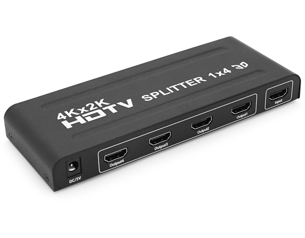 Активний HDMI сплітер 1=>4 порти, 3D, 1080Р, 4Kx2K, 1,4 версія, DC5V / 2A Q20, Box