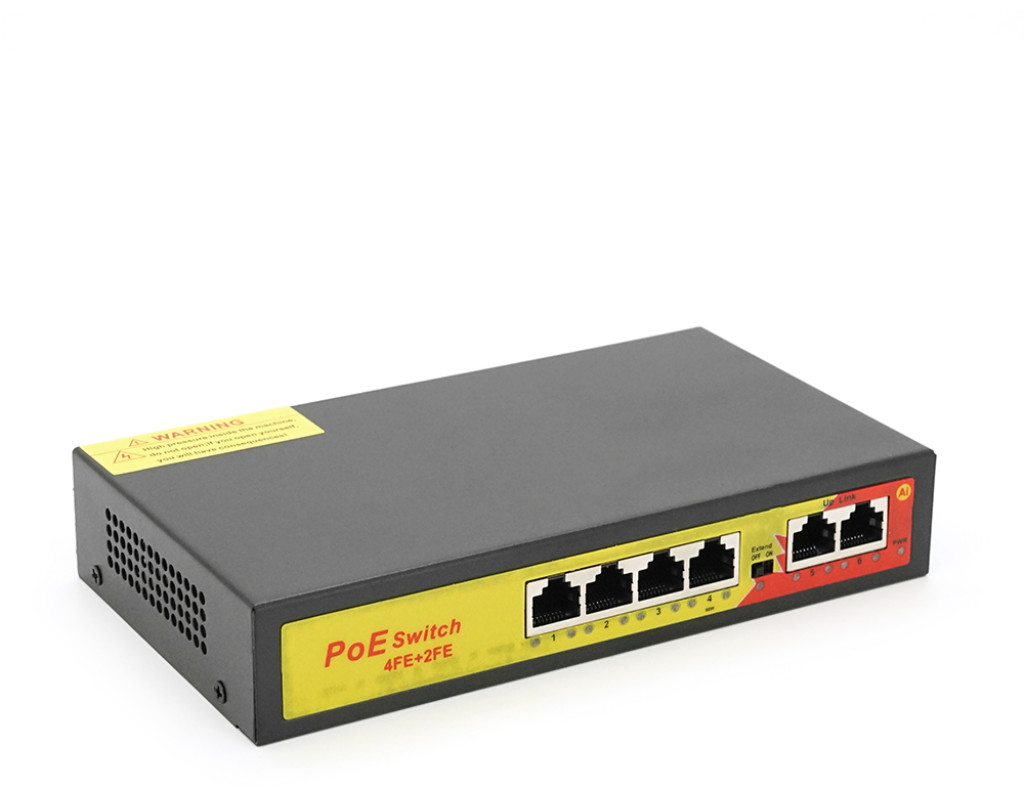 Комутатор POE з 4 портами POE 100Мбіт + 2 порт Ethernet (UP-Link) 100Мбіт, 52V / 1.44A, 100 / 250метрів, корпус - метал, Black, БП вбудований, Q20