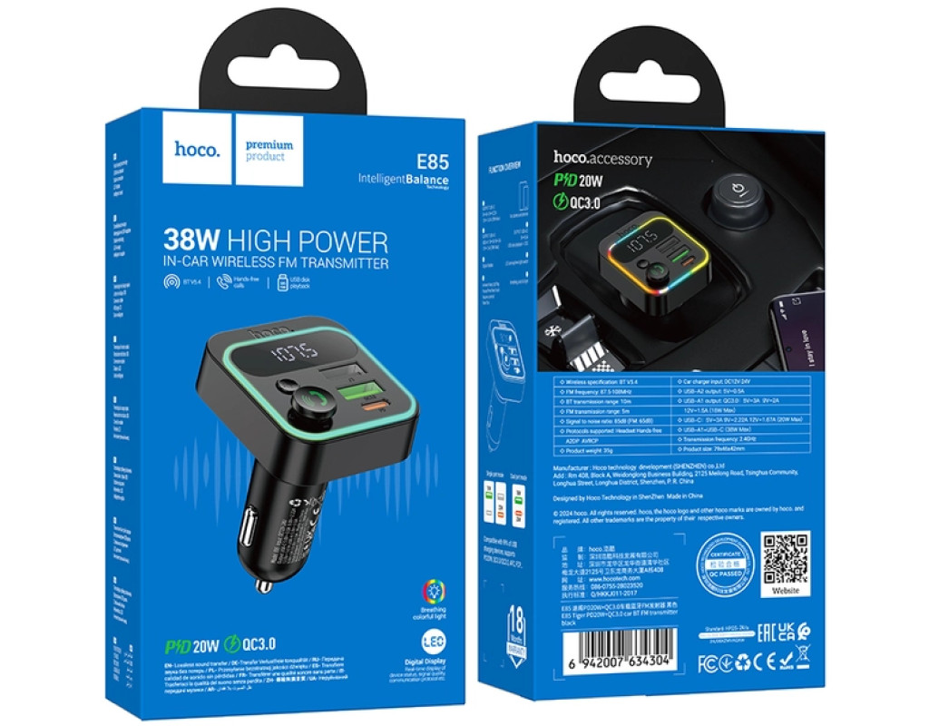 FM модулятор Hoco E85 Tiger PD20W + QC3.0 – це сучасний пристрій для комфортних поїздок, що дасть змогу вам насолоджуватися музикою та заряджати гаджети в дорозі. Завдяки підтримці Bluetooth 5.4, модулятор забезпечує стабільне бездротове з’єднання з вашим смартфоном, мінімізуючи затримки та перешкоди. Підтримка USB-A і Type-C дає можливість заряджати одразу два пристрої, а технології швидкого заряджання PD20W і QC3.0 прискорюють процес поповнення енергії. Вбудований дисплей відображає робочі параметри, а стильне підсвічування надає пристрою естетичного вигляду. Ви можете відтворювати музику з USB-накопичувачів, а також використовувати функцію handsfree для безпечних розмов за кермом. Компактний і стильний, Hoco E85 стане чудовим доповненням до вашого автомобіля. |