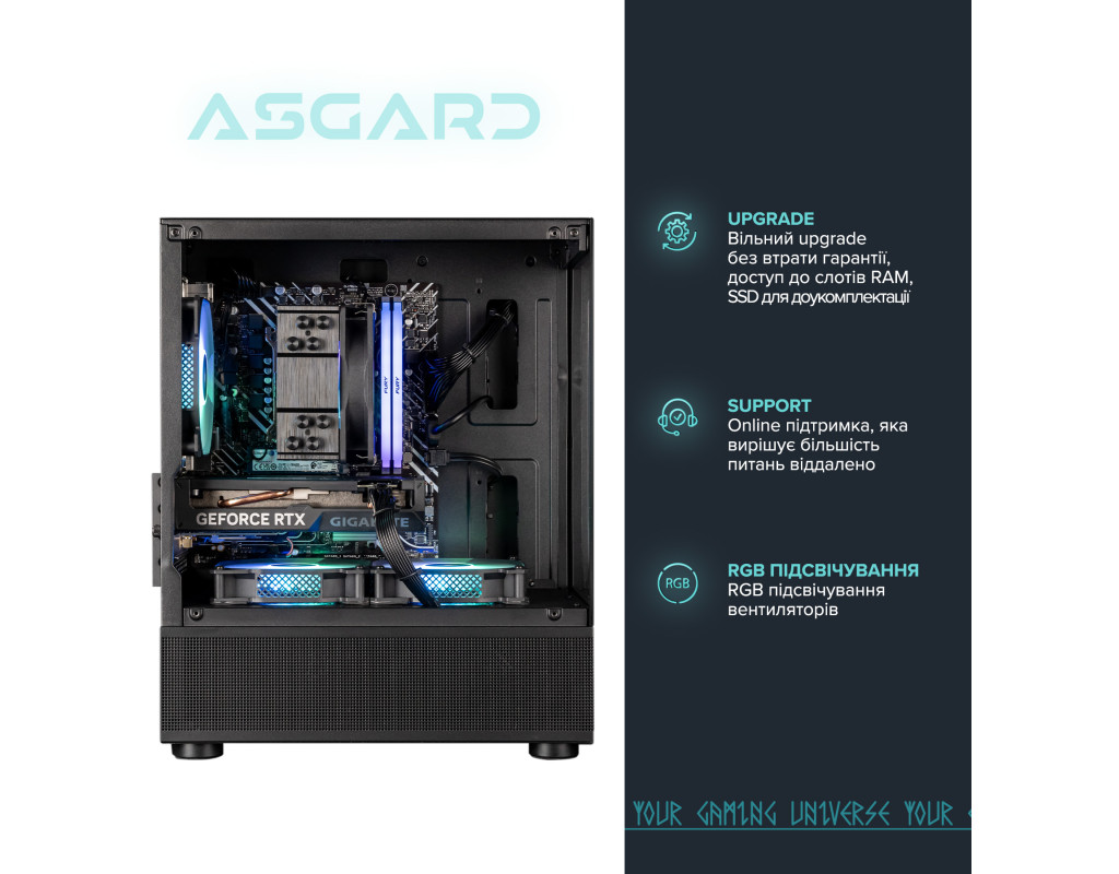 Український виробник ASGARD - це онлайн лабораторія по створенню неповторних кастомізованих ігрових персональних комп’ютерів.