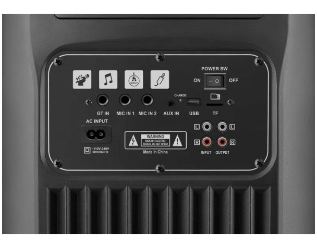 Не менш цікавою функцією є режим караоке, завдяки якому ви зможете підключити мікрофон (є два мікрофонних входи з регулюванням гучності та луна-ефектом) і дозволити собі та друзям відчути себе справжніми зірками сцени. Підключення гітари додає нових можливостей для творчості, перетворюючи систему на повноцінний музичний центр.