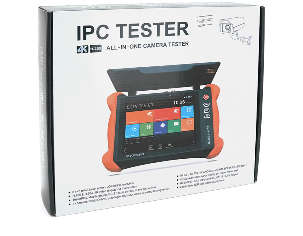 | Тестер IP-камери / Тестер Аналогових камер / Мультиметр / Тестер оптоволоконного кабелю Опис: - 8-дюймовий сенсорний екран, роздільна здатність 2048*1536 - 8MP TVI, 8MP CVI, 5MP AHD та тест SDI / EX-SDI - Відображення відео H.265 / H.264,4K через основний потік - Тест IP камер, Тест аналогових камер - Вбудований WIFI / точку доступу WIFI - Вхід HDMI та вихід 4K - Тест TDR кабелю RJ45, тест якості кабелю - Вихідна потужність DC12V 3A, DC48V PoE - ONVIF, автоматичний перегляд відео та створення звіту про тестування - Android Специфікація: AHD (A) / CVI (D) / TVI (H) / SDI (S), UTC для налаштування меню камери. Підтримка входу HDMI 1080P. Цифровий тестер, тестер оптоволоконного кабелю (O) / візуальний дефектоскоп (V) / тест кабелю TDR (T). Підтримка трасувальника кабелю, вимірювач рівня відеосигналу. |